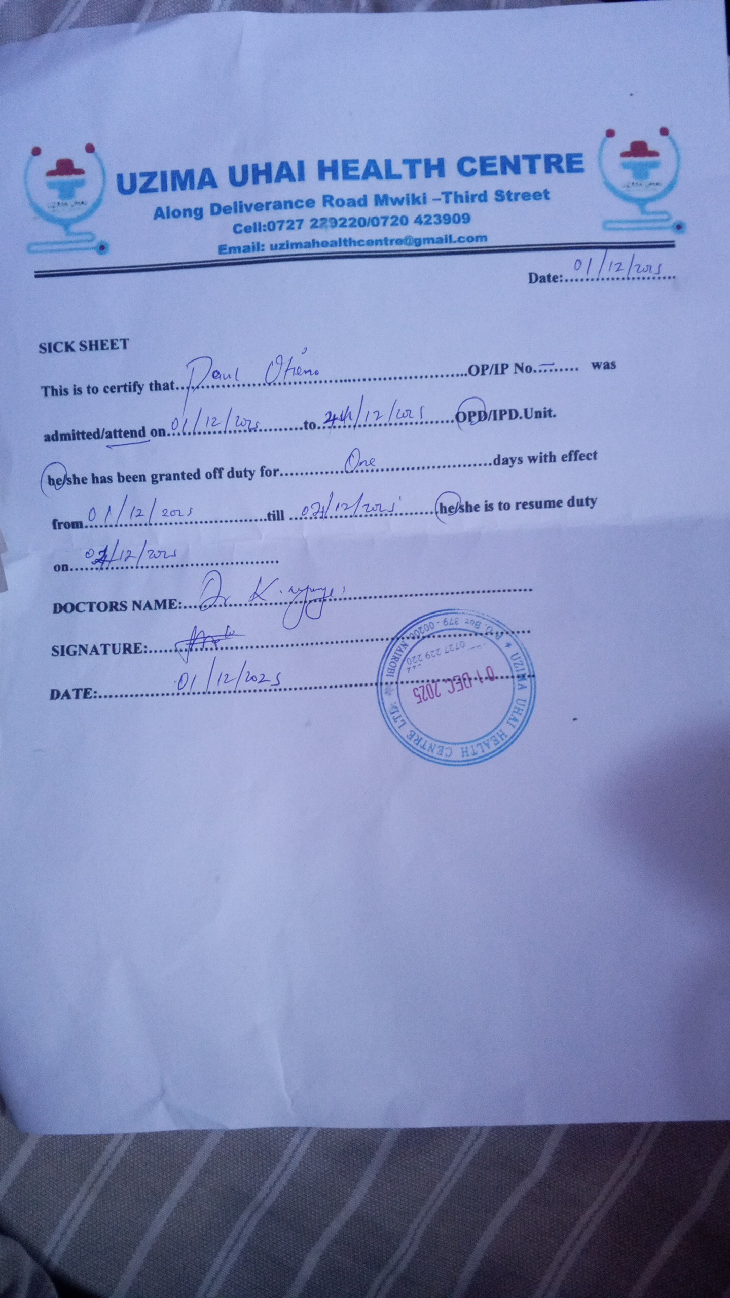 ID: AMK089 Name: Ossome, Paul Otieno |